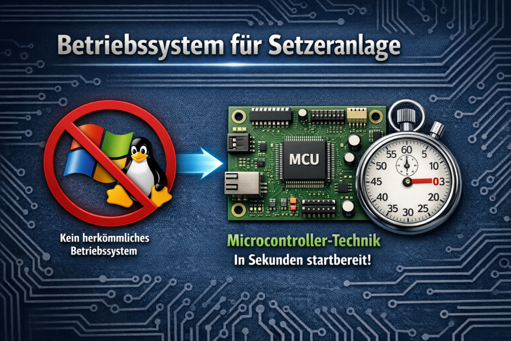 Die Setzer-Platine arbeitet nicht mit einem herkömmlichen Betriebssystem, sondern mit einem leistungsfähigen Microcontroller. Dadurch ist das System in wenigen Sekunden startbereit, arbeitet besonders stabil und ist auf die Anforderungen im Orgelalltag zugeschnitten.